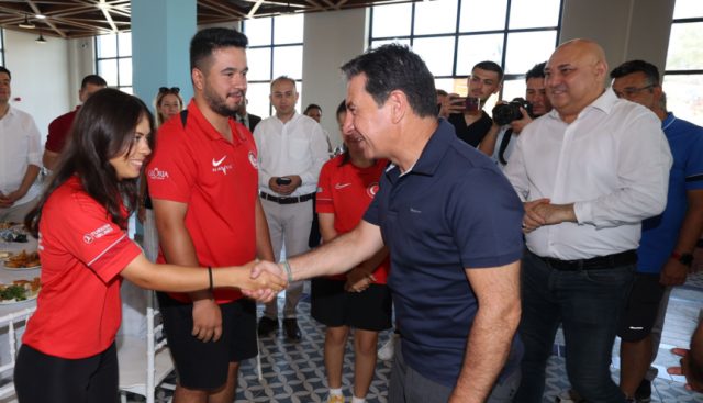 Uluslararası ve ulusal turnuvalarda büyük başarılara imza atarak Muğla’nın gururu olan sporcularla bir araya gelen Muğla Büyükşehir Belediye Başkanı Ahmet Aras “Çocuklarımıza hayal edecek ortamlar yaratmamız gerekiyor. Büyükşehirlerde, metropollerde belli gelir grubunun üzerindeki insanlar çocuklarının bu tür yeteneklerini bulmak için büyük paralar harcayıp okçuluk mu yapar, yelkencilik mi yapar ya da başka bir şey olur mu diye onun peşinde yıllarca koşuyor. Bir bakıyorsunuz o kadar harcamalar sonucunda başarılı olamıyorlar. Burada hayaller ve gönül verme işi var. Ejder hocamız bunu