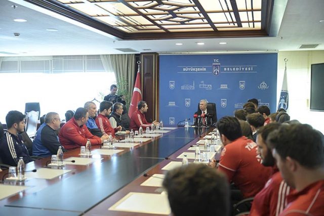 Şampiyon sporcular, ASKİ Spor Kulübü’nün onursal başkanı olan Mansur Yavaş’a Türk sporuna yaptığı destekler için teşekkür etti.
