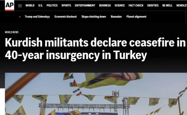 Katar merkezli El Cezire, “PKK, Türkiye ile 40 yıldır süren çatışmalarda ateşkes ilan etti” başlığını kullandı.